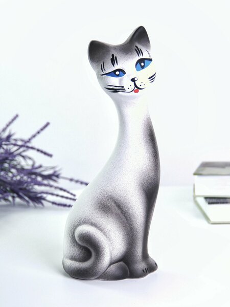 Декоративная фигурка Кот Кит 25 см белый с серым матовый - Изготовлен из прочной керамики — сочетает долговечность и выразительность. - Элегантный матовый оттенок белого с серыми акцентами идеально впишется в любой интерьер. - Компактные размеры позволяют гармонично разместить фигурку на полках, комодах или книжных стеллажах. - Универсальная стилистика подходит как для подарков, так и для личного украшения жилья. - Роспись выполнена с тщательной проработкой деталей, подчеркивая натуральность образа домашнего любимца.