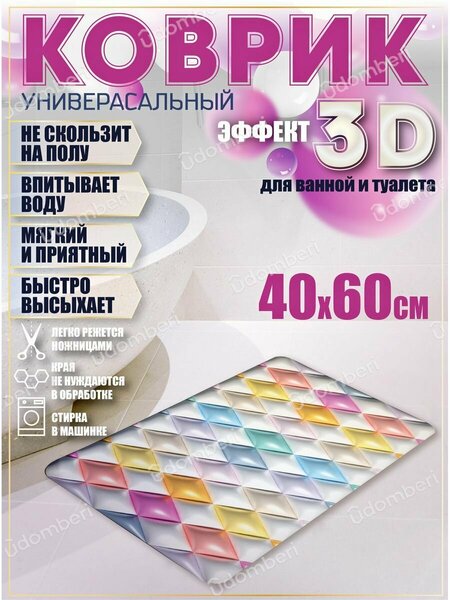 Коврик для ванны или душа в эстетичном дизайне объёмного 3D - стильный интерьерный элемент, который станет эффектным украшением комнаты. Универсальный аксессуар толщиной 3 мм выполнен в оптимальном размере: длина - 60 см, ширина - 40 см, изготовлен из гипоаллергенного материала - вспененного ПВХ. Перфорированный «половик» прямоугольной формы украшен стильным принтом, который не смывается, не выцветает и не выгорает, долго радует вас насыщенностью цвета и яркостью декоративного рисунка в виде ракушек или камушков, цветов и растений, красивых узоров. Износостойкий ковер можно расположить в ванной комнате, чтобы опускать на него ноги после купания без риска поскользнуться и упасть. Его можно положить около стиральной машины, около унитаза в туалете. Модный аксессуар уютно украсит совмещенный санузел в доме или квартире. Красивый коврик с очень мягкой поверхностью не скользит по полу, впитывает воду, не препятствует ее активному стоку, приглушает звуки и сохраняет тепло. Современную модель с антискользящей основой выбирают для сауны или бани на даче, для расположения у лесенки бассейна или в душе для водных процедур. Защитный аксессуар важен для вашей безопасности - он исключает опасность поскользнуться на мокрой и скользкой плитке. Гибкий коврик легко скручивается в рулон для хранения и не занимает много места в шкафу. Он прост в уходе: его можно мыть в воде с мыльным раствором вручную, выбирать для очищения стирку в машинке - автомат. Противоскользящий коврик - практичное приобретение для взрослых женщин и мужчин, хороший подарок для родных и близких, для друзей с детьми на новоселье, любой другой праздник, в том числе на день рождения. В линейке бренда представлены модели в сочетаниях светлых и темных цветов, с различными рисунками, в том числе в морском стиле. Долговечную «дорожку» выбирают в виде домашнего или дачного комнатного аксессуара, используют в любое время года: в летний или зимний, осенний или весенний период, в помещении или на улице. Комплект поставки включает один предмет: влаговпитывающий коврик (1 штука). Товар поставляется в защитной упаковке для сохранности изделия в процессе доставки покупателю из нашего магазина. Произведено в России. У нас есть акции и распродажи, вы можете купить наши товары в подарок со скидкой!