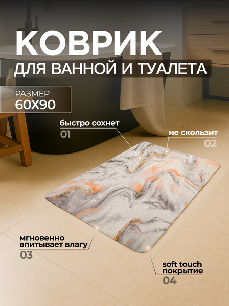 Размер 90×60 см делает этот коврик для ванной комнаты универсальным. Его можно использовать как коврик в ванную, коврик в туалет или коврик под унитаз. Он идеально подходит для размещения возле ванны, душа или раковины. Такой коврик для ванной комнаты также выполняет функцию стильного декора для ванной и дополняет современный интерьер.