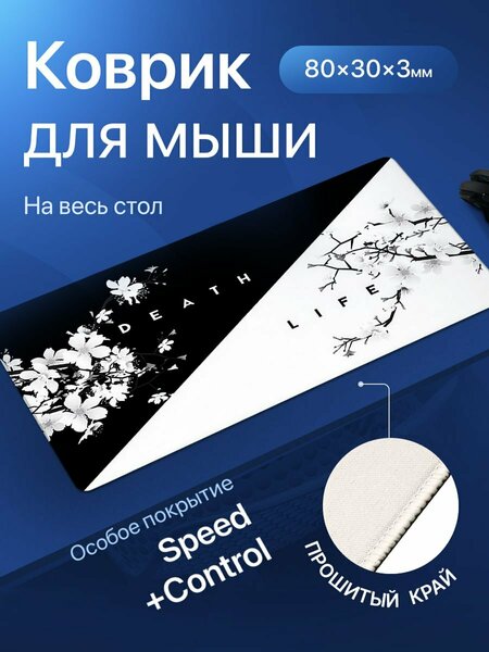 Игровой коврик для мыши большой, черно-белый, Life/Death. Размер 80х30x0.3