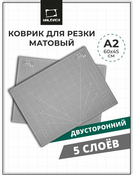 Макетный коврик для резки Малевичъ, 5 слойный, А2 серый, двухсторонний