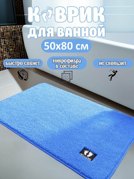 Коврик для ванной, 50x80 см, голубой, полиэстер, противоскользящий