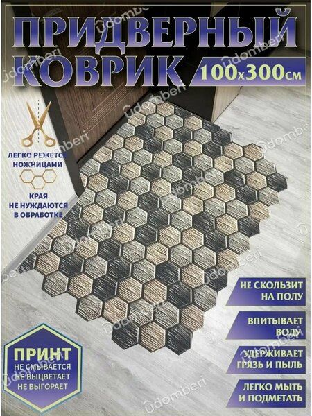 Придверный коврик из качественных современных материалов - это хорошее приобретение и стильный интерьерный элемент. Напольная модель прямоугольной формы от нашего бренда представлена в оптимальном размере: ширина 100 см, длина 300 см, выполнена из высокотехнологичных материалов - 100% полиэстера (верх) с подложкой из 100% ПВХ. В коллекции бренда доступны ковры, украшенные стильными рисунками: в виде сот или геометрических узоров, красивых орнаментов, с имитацией поверхности камня, в том числе мрамора. Вы найдете у нас нескользящие коврики в самых разных расцветках, включая светло - серый цвет, коричневый или бежевый. Качественный премиум - принт не выцветает и не выгорает, не смывается. Полезное изделие легко отрезается под нужный вам размер или форму обычными ножницами. Его края не осыпаются, не ворсятся и не нуждаются в дополнительной обработке. Благодаря нескользящей подложке ковер неподвижно удерживается на полу, вбирает в себя грязь и пыль, впитывает воду. Комнатный аксессуар с антискользящей основой будет полезен для защиты пола у входной двери в коридоре или прихожей дома, возле порога квартиры со стороны подъезда или внутри нее. Грязезащитную модель выбирают для любой комнаты, используют в домашних и дачных условиях, кладут на балкон или лоджию, террасу или веранду, в закрытую беседку на улице. Влаговпитывающий коврик очень удобен для сушки грязной после дождя или снега женской и мужской, детской уличной обуви. Эстетичный защитный аксессуар в стильном дизайне соты подарит вам комфорт использования, будет в течение длительного времени каждый день радовать оригинальным внешним видом и безупречной функциональностью. Трендовый коврик - яркий предмет интерьера, который будет неизменно привлекать внимание и особенно эффектно выглядеть на однотонном полу в виде плитки или ламината, деревянного паркета или линолеума. Износостойкий половик из материалов высокого качества прост в уходе и стирке: его можно чистить щеткой, удобно вытряхивать или пылесосить во время уборки дома, подметать веником, мыть и высушивать. Стильный ковер - отличное приобретения для себя или полезный супер - презент для родных, близких и друзей на новоселье. Произведено в России. У нас есть акции и распродажи, вы можете купить наши товары в подарок со скидкой!