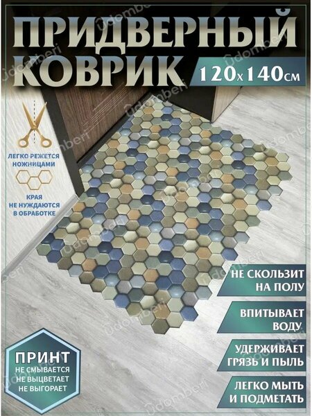 Придверный коврик из качественных современных материалов - это хорошее приобретение и стильный интерьерный элемент. Напольная модель прямоугольной формы от нашего бренда представлена в оптимальном размере: ширина 120 см, длина 140 см, выполнена из высокотехнологичных материалов - 100% полиэстера (верх) с подложкой из 100% ПВХ. В коллекции бренда доступны ковры, украшенные стильными рисунками: в виде сот или геометрических узоров, красивых орнаментов, с имитацией поверхности камня, в том числе мрамора. Вы найдете у нас нескользящие коврики в самых разных расцветках, включая светло - серый цвет, коричневый или бежевый. Качественный премиум - принт не выцветает и не выгорает, не смывается. Полезное изделие легко отрезается под нужный вам размер или форму обычными ножницами. Его края не осыпаются, не ворсятся и не нуждаются в дополнительной обработке. Благодаря нескользящей подложке ковер неподвижно удерживается на полу, вбирает в себя грязь и пыль, впитывает воду. Комнатный аксессуар с антискользящей основой будет полезен для защиты пола у входной двери в коридоре или прихожей дома, возле порога квартиры со стороны подъезда или внутри нее. Грязезащитную модель выбирают для любой комнаты, используют в домашних и дачных условиях, кладут на балкон или лоджию, террасу или веранду, в закрытую беседку на улице. Влаговпитывающий коврик очень удобен для сушки грязной после дождя или снега женской и мужской, детской уличной обуви. Эстетичный защитный аксессуар в стильном дизайне соты подарит вам комфорт использования, будет в течение длительного времени каждый день радовать оригинальным внешним видом и безупречной функциональностью. Трендовый коврик - яркий предмет интерьера, который будет неизменно привлекать внимание и особенно эффектно выглядеть на однотонном полу в виде плитки или ламината, деревянного паркета или линолеума. Износостойкий половик из материалов высокого качества прост в уходе и стирке: его можно чистить щеткой, удобно вытряхивать или пылесосить во время уборки дома, подметать веником, мыть и высушивать. Стильный ковер - отличное приобретения для себя или полезный супер - презент для родных, близких и друзей на новоселье. Произведено в России. У нас есть акции и распродажи, вы можете купить наши товары в подарок со скидкой!