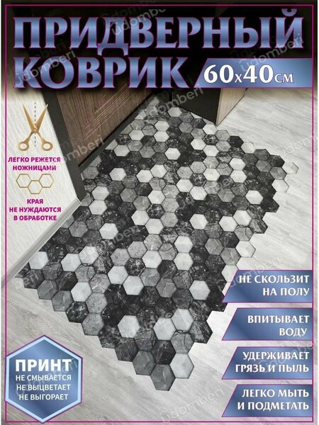 Придверный коврик из качественных современных материалов - это хорошее приобретение и стильный интерьерный элемент. Напольная модель прямоугольной формы от нашего бренда представлена в оптимальном размере: ширина 60 см, длина 40 см, выполнена из высокотехнологичных материалов - 100% полиэстера (верх) с подложкой из 100% ПВХ. В коллекции бренда доступны ковры, украшенные стильными рисунками: в виде сот или геометрических узоров, красивых орнаментов, с имитацией поверхности камня, в том числе мрамора. Вы найдете у нас нескользящие коврики в самых разных расцветках, включая светло - серый цвет, коричневый или бежевый. Качественный премиум - принт не выцветает и не выгорает, не смывается. Полезное изделие легко отрезается под нужный вам размер или форму обычными ножницами. Его края не осыпаются, не ворсятся и не нуждаются в дополнительной обработке. Благодаря нескользящей подложке ковер неподвижно удерживается на полу, вбирает в себя грязь и пыль, впитывает воду. Комнатный аксессуар с антискользящей основой будет полезен для защиты пола у входной двери в коридоре или прихожей дома, возле порога квартиры со стороны подъезда или внутри нее. Грязезащитную модель выбирают для любой комнаты, используют в домашних и дачных условиях, кладут на балкон или лоджию, террасу или веранду, в закрытую беседку на улице. Влаговпитывающий коврик очень удобен для сушки грязной после дождя или снега женской и мужской, детской уличной обуви. Эстетичный защитный аксессуар в стильном дизайне соты подарит вам комфорт использования, будет в течение длительного времени каждый день радовать оригинальным внешним видом и безупречной функциональностью. Трендовый коврик - яркий предмет интерьера, который будет неизменно привлекать внимание и особенно эффектно выглядеть на однотонном полу в виде плитки или ламината, деревянного паркета или линолеума. Износостойкий половик из материалов высокого качества прост в уходе и стирке: его можно чистить щеткой, удобно вытряхивать или пылесосить во время уборки дома, подметать веником, мыть и высушивать. Стильный ковер - отличное приобретения для себя или полезный супер - презент для родных, близких и друзей на новоселье. Произведено в России. У нас есть акции и распродажи, вы можете купить наши товары в подарок со скидкой!