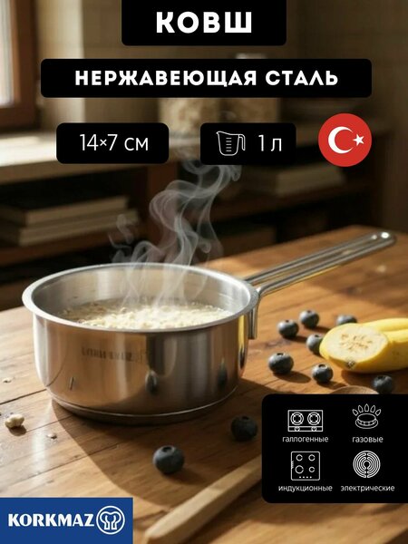 Ковш серии Perla от KORKMAZ – идеальное сочетание функциональности и стильного дизайна. Изготовлен из высококачественной нержавеющей стали, он равномерно распределяет тепло и сохраняет питательные вещества продуктов во время готовки. Подходит ко всем типам плит, включая индукционные и стеклокерамические поверхности. Легкая чистка возможна даже в посудомоечной машине, а фиксированная ручка обеспечивает комфорт при работе. Объем в 1 литр позволяет точно контролировать процесс приготовления первых блюд, соусов и гарниров. Современный матовый серебристый дизайн органично дополнит любую кухню. Эргономическая форма гарантирует безопасность и простоту эксплуатации каждый день. Размер 14х7 см. Толщина дна 8 мм, толщина стенок 0,7 мм.