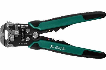 Стриппер KRAFTOOL TK-8 автоматический, многофункциональный, 0.05 - 8 мм2, 22637 предназначен для снятия изоляции без повреждения внутренних жил. Инструменты для снятия изоляции KRAFTOOL, изготовлены из высококачественной стали с закалкой рабочих поверхностей, предназначены для профессионального применения. Обладают повышенным ресурсом, обеспечивают наивысшее качество электромонтажных работ. Обжим изолированных наконечников: 0.5-6 мм2. Обжим неизолированных наконечников: 0.5- 2.5; 4.0-6.0 мм2. Снятие оболочки с плоских проводов ВВГ-П, ПУНП . Обжим автомобильных клемм 7-8 мм. Автоматическое снятие изоляции 0,13-6 мм² . Дополнительный микрорегулятор для снятия изоляции 0,05 мм² и 8 мм². Тип: автоматический. Назначение: для снятия изоляции, обжима и резки проводов. Для коаксиальных кабелей: нет. Нож: нет. Сменные ножи: нет. Регулировка глубины реза: нет. Регулировка диаметра реза: нет. Max сечение провода: 8 мм². Min сечение провода: 0.05 мм². Электроизолированный (VDE): нет. Вес нетто: 0.393 кг. Торцевой захват: да. Сечение провода: 0.05-8. Чехлы-рукоятки: двухкомпонентные.
