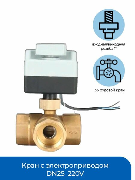 Кран с электроприводом DN25 (1") 3-х ходовой 220V - это устройство, предназначенное для регулирования потока жидкости в трубопроводах диаметром 25 мм (1 дюйм). Он оснащен электроприводом, что позволяет автоматизировать процесс управления краном с помощью электрического сигнала.