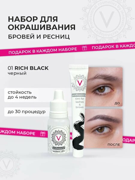Краска для бровей и ресниц VELVET COSMETICS — профессиональное средство для создания выразительного и ухоженного взгляда. Подходит для окрашивания как ресниц, так и бровей, что позволяет создать гармоничный и завершённый образ. Формула краски обогащена натуральными компонентами: маслом какао, касторовым маслом и экстрактом ягод клюквы. Они ухаживают за волосками, увлажняют, укрепляют и делают ресницы и брови более мягкими и блестящими. Пигменты красителя обеспечивают насыщенный и стойкий цвет, который сохраняется надолго, придавая макияжу яркость и аккуратность. Мягкая текстура краски позволяет легко наносить и распределять средство без комочков, обеспечивая ровный, профессиональный результат. Краска для бровей и ресниц VELVET COSMETICS подходит для салонного и домашнего использования, позволяя получить стойкий, красивый и ухоженный эффект с минимальными усилиями.