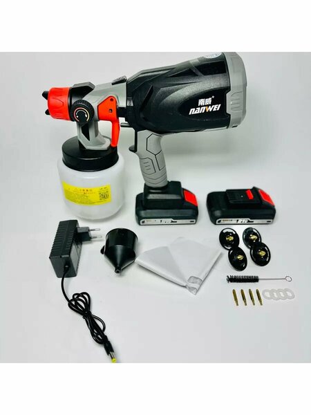Краскопульт аккумуляторный с 2 шт батареями 2 Ач. В комплекте 5 шт дюз размерами от 1 до 2 мм.