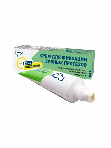 Крем для фиксации зубных протезов. Внешний вид: Плотная кремовая текстура, нейтрально желтоватого цвета с запахом вазелина. Возраст с 18 лет Крем: -препятствует попаданию пищи под протез -нейтральный вкус -экстрасильная фиксация Результат: Надежная фиксация протеза в полсти рта. Способ применения: Как зафиксировать протез: Очистите и высушите Ваш съемный протез. Нанесите крем короткими полосками, как показано на рисунке на упаковке, не слишком близко к краям протеза. Прополощите рот перед фиксацией протеза Вставьте протез в ротовую полость, плотно прижмите, сомкните челюсти на несколько секунд, для лучшей фиксации. Для надежной фиксации протеза подождите 5-10 минут перед приемом пищи или жидкости.