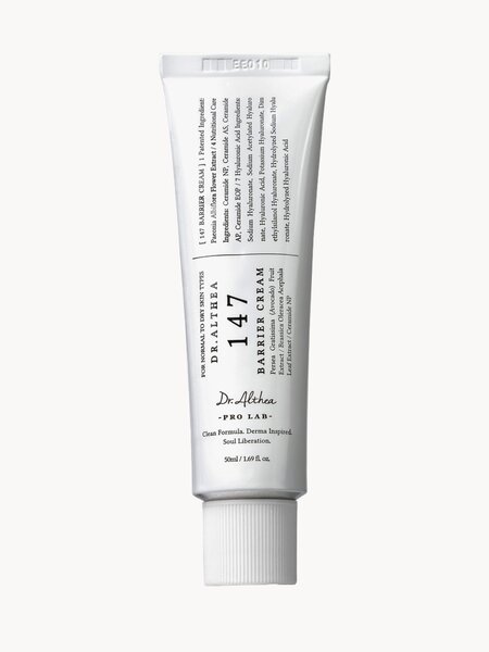 Успокаивающий крем Dr. Althea 147 Barrier Cream питает, устраняет сухость и шелушение, укрепляет липидный барьер и поддерживает оптимальный уровень увлажнения. Снимает зуд, раздражение и покраснение, способствует заживлению воспалений. Подходит для ухода за сухой и обезвоженной кожей, а также для восстановления после пилингов и косметологических процедур. Имеет плотную кремовую текстуру. Основные действующие компоненты: Гвайазулен — синтетический аналог азулена, основного действующего вещества аптечной ромашки. Обладает противовоспалительным и успокаивающим действием. Борется с покраснением, раздражением и зудом, снижает чувствительность и заживляет микроповреждения. Комплекс церамидов восстанавливает целостность рогового слоя, укрепляет естественный барьер, снижает чувствительность к внешним раздражителям, устраняет шелушение и сухость. Экстракт пиона обладает тонизирующим и восстанавливающим действием. Борется с тусклостью и выравнивает тон, обогащает клетки минералами и полисахаридами. Экстракт авокадо — источник витаминов А, С и Е, укрепляет локальный иммунитет, уменьшает жирность кожи, снижает риск развития воспаления. Экстракт полыни оказывает успокаивающее, противовоспалительное и антиоксидантное действие. Уменьшает покраснение, регулирует выработку себума. 10 видов гиалуроновой кислоты с разной молекулярной массой: молекулы с высокой массой восстанавливают защитный барьер на поверхности кожи, ускоряют заживление и уменьшают шелушение. Молекулы с низкой массой обладают высокой проникающей способностью, они предотвращают потерю влаги на клеточном уровне.