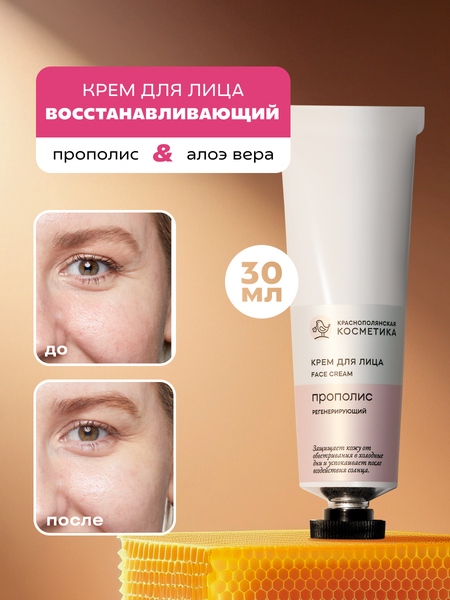 Питательный крем для лица с прополисом — это многофункциональное средство для ежедневного ухода, сочетающее силу продуктов пчеловодства с нежностью натуральных компонентов. Формула разработана для интенсивного восстановления, питания и защиты чувствительной кожи. Ключевые преимущества: Антисептическое действие: борьба с воспалениями и раздражениями Глубокое увлажнение: интенсивное насыщение влагой на 24 часа Восстановление барьера: укрепление защитных функций кожи Питание: обогащение витаминами и антиоксидантами Универсальность: подходит для дневного и ночного использования Активные компоненты: Экстракт прополиса: антисептическое и восстанавливающее действие Гель алоэ вера: увлажнение и успокаивающий эффект Оливковое масло: питание и смягчение Витамин Е: антиоксидантная защита и упругость Растительные эмульгаторы: мягкая текстура и быстрое впитывание Особенности: Сертифицировано по стандарту COSMOS Без парабенов, силиконов и синтетических отдушек Не тестируется на животных Нежная текстура, быстро впитывается