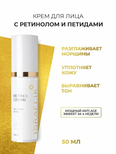 Крем для лица ISRAELIK с ретинолом против морщин, для всех типов кожи, 50мл