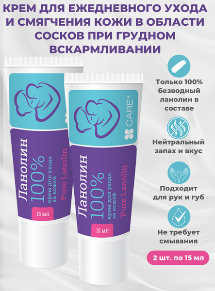Крем для ухода за кожей, 100% чистый безводный ланолин, 15 мл, 2 шт