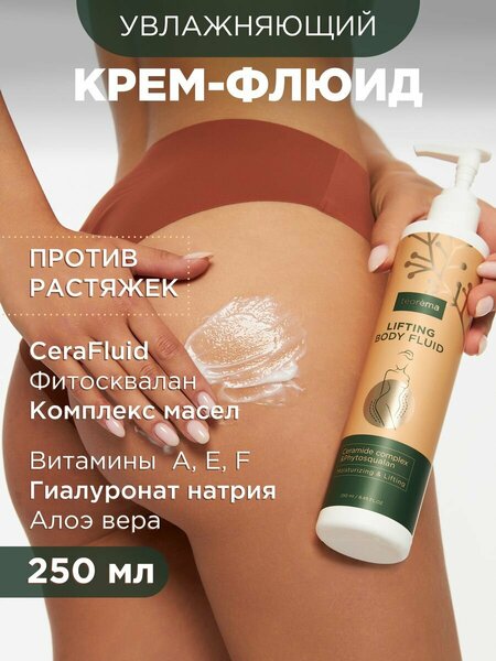 Увлажняющий крем - флюид Teorema - это косметическое средство, предназначенное для ухода за кожей рук и тела. Компоненты, входящие в состав, помогают улучшать внешний вид кожи, восстанавливать и поддерживать ее тонус и эластичность. Крем для тела для очень сухой кожи с маслом - это Качественный уход, глубокое увлажнение, улучшение обменных процессов, эффективное восстановление упругости кожи и контуров тела, а также продолжительное чувство комфорта способен обеспечить подтягивающий крем для тела TEOREMA. Крем от растяжек увлажняет кожу, устраняет ощущение сухости, обеспечивая ее упругость, ускоряет процесс обновления кожи, замедляет процесс старения кожи. Нежная текстура и активная формула способствует экспресс уходу и восстановлению кожи. Имеет длительный эффект. Профессиональный крем для тела восполняет недостаток влаги уже с первого применения. CeraFluid — уникальный комплекс церамидов, улучшает внешний вид кожи, восстанавливает и поддерживает тонус и эластичность. Гиалуронат натрия отлично увлажняет кожу, устраняет ощущение сухости, разглаживает морщинки. Фитосквалан из натурального сырья, благодаря естественному сродству с кожей, легко проникает через эпидермис, препятствует потере влаги, способствует улучшению кожного дыхания. Гель Алоэ вера - природный антиоксидант, обладает противоспалительным, фотозащитным действиями, успокаивает кожу при раздражении и покраснении. Масла персика, макадамии, кокоса - питают, увлажняют, оживляют, разглаживают кожу. Защищают от вредных воздействий окружающей среды. Обладают омолаживающим действием. Витамины A, E, F - увлажняют кожу, обеспечивая ее упругость, ускоряют процесс обновления кожи, замедляет процесс старения кожи. Ваша кожа будет сиять красотой и здоровьем, а уход за телом будет в удовольствие! Косметика обладает моделирующим эффектом, а также борется с сухостью и шелушениями. Нежная текстура увлажняющий крем для тела легко наносится и быстро впитывается. Идеально подойдет в качестве дневного и ночного ухода, для молодой ( подростковой ) и возрастной кожи. Ультрапитательный лосьон может применяться как для SPA в домашних условиях так и для профессионального маникюра и педикюра. Органическое косметическое средство для домашнего ухода и профессионального использования в косметологических кабинетах! Уходовая косметика Teorema отлично подойдет в качестве подарка на любое торжество: новый год, день рождения, юбилей, 8 марта жене, девушке, маме, сестре, подруге или учителю. Раскрой свою натуральную красоту вместе с Teorema!