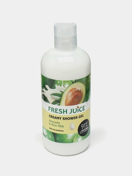 Крем-гель для душа «Авокадо и Рисовое молочко» Fresh Juice / 500 мл легко вспенивается, превращаясь в невесомую консистенцию, которая деликатно избавляет от загрязнений и тщательно ухаживает за эпидермисом. Максимально бережно воздействуя на кожу, он не вызывает сухости или стянутости, чтобы на протяжении длительного времени обладательницу крем-геля не покидало ощущение легкости и комфорта. Состав средства обогащен рисовым молочком и витаминным комплексом, благодаря чему эпидермис получает порцию живительной влаги и полезных веществ для сохранения красоты и молодости. А добавление в состав сока авокадо, Delicate Care Avocado & Rice Milk дарит приятный фруктовый аромат. Достаточно окунуться в нежную шелковистую пену крем-геля для душа от Fresh Juice, чтобы улучшить настроение и прогнать негативные эмоции, обеспечив кожному покрову идеальную чистоту. С таким продуктом понятие свежести и чистоты становится абсолютным!