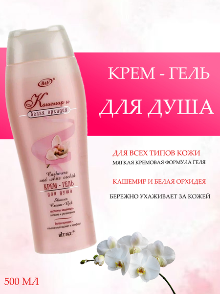 {"widgets":{"@card/UniversalPromoBadge":{"/content/page/fancyPage/defaultPage/universalPromoBadge":{"wrapperProps":{"margins":{"bottom":"3"}},"initialTime":1771697794795,"offerComposeId":"670595019858155846"}}},"meta":{"/content/page/fancyPage/defaultPage/universalPromoBadge":{"name":"@card/UniversalPromoBadge"}},"collections":{"productServiceSnippets":{"670595019858155846":{"productSnippet":{"snippetId":"document_id","type":"MODEL_CARD_LAYOUT","productPayload":{"snippetStyle":"NORMAL","title":{"value":"Крем-гель Витэкс \"Кашемир и Белая Орхидея\", для душа, унисекс, 500мл"},"badges":{"gallery":[{"item":{"badgeType":"ORIGINAL","size":"S","style":"NORMAL","contentType":"TEXT","textPayload":{"text":"ОРИГИНАЛ"}},"type":"BADGE"}]},"price":{"actualPrice":{"amount":{"intPart":54000,"currency":"UZS"},"style":"RED","type":"OTHER_DISCOUNT"},"oldPrice":{"amount":{"intPart":76000,"currency":"UZS"},"style":"STRIKETHROWED"}},"signals":{"lastStock":{"text":{"text":"Осталось 3 шт"},"level":"CRITICAL"}},"gallery":{"mediaItems":[{"picture":{"baseUrl":"https://avatars.mds.yandex.net/get-mpic/6062993/2a0000019a10036eb4a0bcd49a8237235ce0/","width":1080,"height":1440,"title":"Крем-гель Витэкс \"Кашемир и Белая Орхидея\", для душа, унисекс, 500мл"},"type":"IMAGE"},{"picture":{"baseUrl":"https://avatars.mds.yandex.net/get-mpic/15307636/2a00000195a9d37a050d3d9ce9d0d022d386/","width":1066,"height":1600,"title":"Крем-гель Витэкс \"Кашемир и Белая Орхидея\", для душа, унисекс, 500мл"},"type":"IMAGE"}]},"rating":{"ratingValue":5,"ratingCount":5,"reviewsCount":0,"ratingCountStats":{"cnt1":0,"cnt2":0,"cnt3":0,"cnt4":0,"cnt5":5},"snippet":{"rating":"5.0","type":"product","description":"(5) · 14 купили","descriptionList":["(5)","14 купили"],"ratingStar":"5"}},"wishlistButton":{"businessId":192020979,"mskuId":100382496926,"modelId":1805860057,"oskuId":103823204753,"offerId":"kxNLgYm8-q8fArgCP4HSCg"},"productRating":{"rating":"5.0","type":"product","description":"(5) · 14 купили","descriptionList":["(5)","14 купили"],"ratingStar":"5"}},"baobabPayload":{"type":"offer","wareId":"kxNLgYm8-q8fArgCP4HSCg","modelId":1805860057,"marketSku":"100382496926","snippet_type":"product","isExpress":false,"price":76000,"additionalPrices":[{"priceType":"withDiscount","priceValue":54000},{"priceType":"unknown","priceValue":76000}],"hid":91176,"shopId":431782,"shopSku":"4810153011008","supplierId":198952671,"supplierType":3,"isUltima":false,"oskuId":103823204753,"snippetTheme":"GRID_FULL","stockCount":3,"rating":{"rating":"5.0","purchaseCount":"14","gradesCount":"5","ratingType":"product"},"promoLogJoinId":"8b7f52f34572295685376785bd19f034/95736ead9080b597"},"themeType":"GRID_FULL"}}}}}