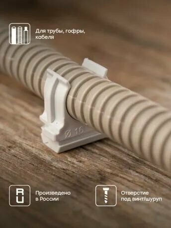Крепеж-клипса d20мм (уп.100шт) Plast EKF derj-z 16n – аксессуар. Изготовлен из пластика. Применяется как зажим для крепления труб диаметром 20 мм.