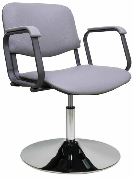 Парикмахерское кресло Контакт серолго цвета на пневмотическом хромированном подъемнике (Производство-Россия). Подлокотники: металлические с накладками из кож. зама. Регулировка по высоте: пневматический хромированный подъемник. Основание: хромированный диск. Мягкие элементы изделия обиты искусственной кожей и изготовлены из высококачественного поролона. Высота сиденья (от), мм 410 Высота сиденья (до), мм 540