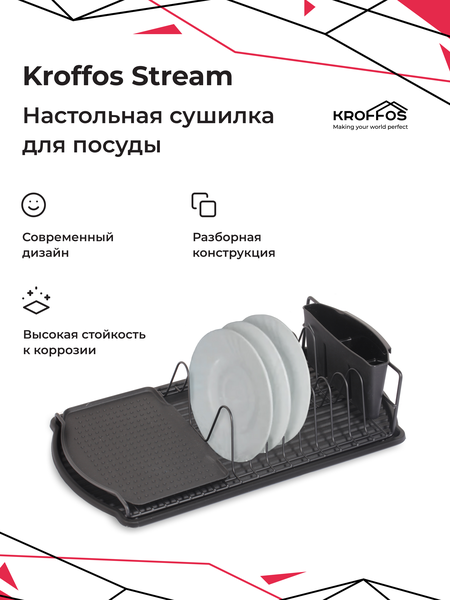 Сушилка для посуды KROFFOS "Stream", настольная, сталь, с поддоном