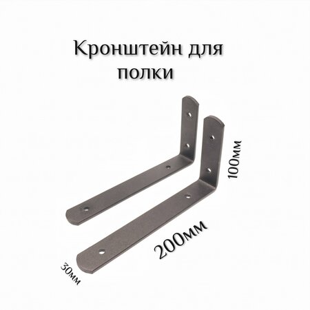 Кронштейн для полки, стиль лофт, 200х100х30х4мм, черный, 2шт.
