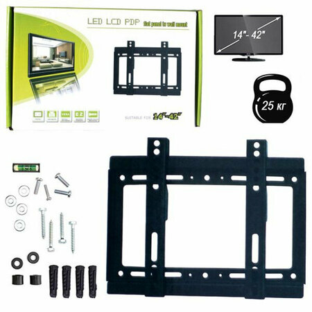 Достоинства:цена, качество Недостатки:за эту цену нет Комментарий:Самый простой кронштейн какой только может быть. Порадовал уровень в комплекте. Установка проще некуда. Всё для установки есть. Если надо просто повесить телевизор, без поворотов и наклонов то это идеальный вариант. Рекомендую.