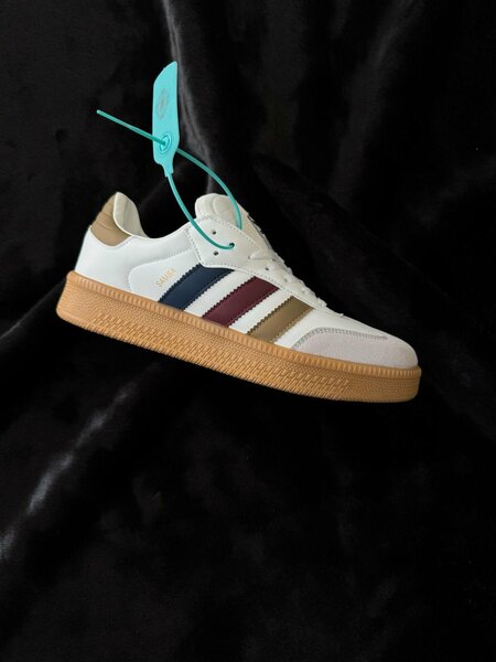 Стильные кроссовки в стиле Adidas Samba. Лёгкие, удобные и подходят для ежедневной носки. Верх выполнен из качественной эко-кожи, а прочная резиновая подошва обеспечивает хорошее сцепление и комфорт при ходьбе. Есть несколько цветовых вариантов. Преимущества Лёгкие и удобные Качественные материалы Прочная резиновая подошва Подходят для повседневной носки Классический стильный дизайн
