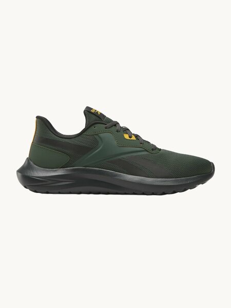 Кроссовки Reebok из серии Energen Lux идеально подходят для повседневной носки и активных тренировок. Эти кроссовки представлены в цвете хаки/чёрный/жёлтый и доступны в размере 9,5 US.