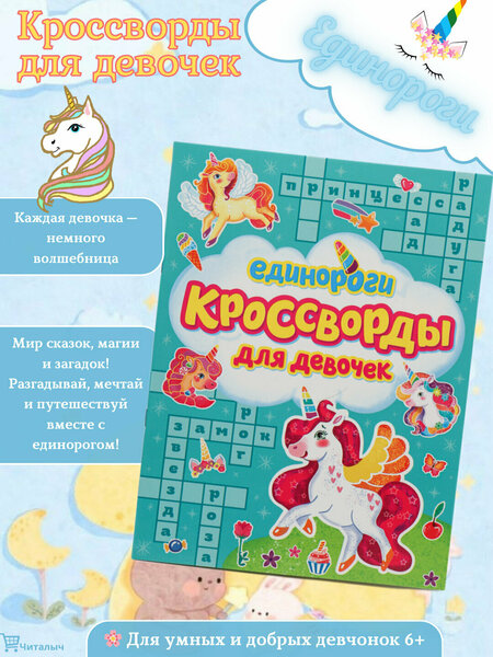 Увлекательная коллекция головоломок! ✏ Эта книга содержит кроссворды, словесные игры и другие интеллектуальные задания, специально разработанные для девочек. Каждая задача не только развлекает, но и помогает узнавать новые слова и понятия. Что внутри? ✔ Кроссворды разного уровня сложности – от простых до продвинутых ✔ Тематические словесные игры – животные, знаменитости, наука и многое другое ✔ Задания с картинками – визуальные подсказки делают процесс интереснее ✔ Ответы – можно проверить себя, если задача кажется сложной Почему стоит купить? Интересные темы – специально подобраны для девочек Яркий и красочный дизайн – привлекает внимание Развивает логику и эрудицию – обучение через игру Для кого: • Девочки 7-12 лет • Родители, которые хотят проводить время с детьми с пользой • Педагоги и воспитатели Дополнительно: • Все задания адаптированы по возрасту • Охватывает разные темы (наука, искусство, повседневная жизнь) Эта книга не только развлекает, но и приносит пользу – ваш ребёнок будет учиться, даже не замечая этого!