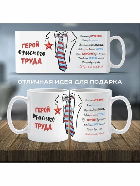 Кружка Герой офисного труда! от бренда Зеленый перец станет отличным подарком для мужчин в этот праздничный день. Изготовленная из качественной керамики, она порадует своим стильным дизайном и удобной формой. Кружка украшена тематическим рисунком, который создаст праздничное настроение. Она прекрасно подойдет для чая, кофе или других горячих напитков, как дома, так и в офисе. Керамическая кружка – не только стильный аксессуар, но и практичный предмет быта. Она не впитывает запахи и не задерживает вкус напитка. Поэтому вы всегда будете наслаждаться идеально чистым и ароматным чаем или кофе. Помимо этого, кружка легко моется и не требует особого ухода.