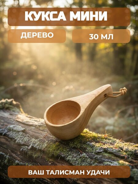 Малая кружка-кукса ёмкостью около 25-30 мл. Кукса — это народная саамская (финская) кружка, вырезанная из дерева. Распространена и весьма популярна не только у финнов, но среди других народов Северной Европы. В поверье у финнов и других народов считается, что кружка-кукса приносит удачу. Материал: каучуковое дерево(гевея). Посуда из гевеи устойчива к повышенной влажности и к высоким температурам, не уступает по прочности дубу, практически не впитывает влагу и посторонние запахи, устойчива к перепаду температур. Размер кружки: 10,2 х 5,1 х 3,4 см. Вес с учётом ремешка: 40 г. *Рекомендуется ручная мойка! Кружка без логотипа и брендирования.