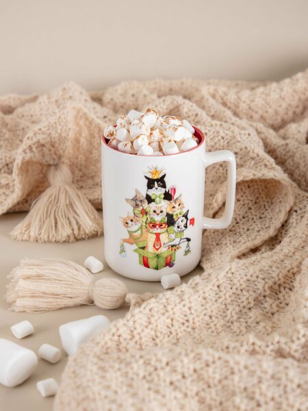 Комментарий:Прекрасная новогодняя чашка в подарок. Удобная интересная ручка. Чашка - глянцевая, поэтому блестит. Красивый кото-рисунок.