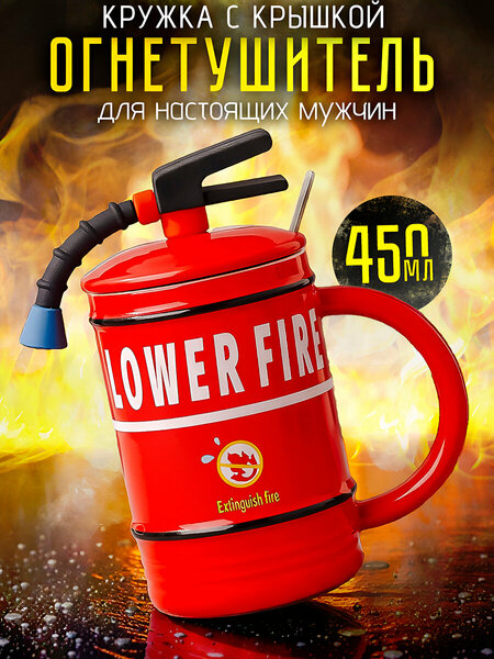 Кружка керамическая с крышкой и ложкой Огнетушитель будет идеальным подарком и сюрпризом любому Мужчине, Пожарному, МЧС –ку, учителю труда, автолюбителю и т. д. Изготовленная из прочной керамики высокого качества, наша кружка большим объемом 450 мл обладает надежностью и долговечностью, что позволяет использовать ее как для горячих, так и для любых холодных напитков. Крышка керамическая с Силиконовой ручкой. Ложка сделана из нержавеющей пищевой стали марки 304.
