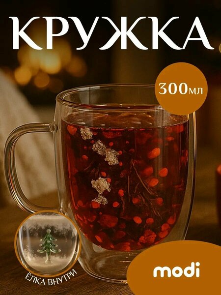 Кружка Modi объёмом 300 мл — эффектное сочетание практичности и дизайнерской выразительности. Внутри чашки, на дне, расположена миниатюрная объёмная ёлочка, которая появляется по мере того, как вы наслаждаетесь напитком. Такой элемент создаёт уютное, праздничное настроение и делает каждое чаепитие особенным. Двойные стенки сохраняют тепло напитка дольше, не обжигая руки. Стекло прочное и устойчивое, прозрачность подчёркивает декоративную ёлку и делает подачу особенно эффектной. Кружка универсальна: подходит для чая, кофе, какао, компота и других напитков. Благодаря нейтральному дизайну и уникальной детали внутри, эта модель идеально вписывается в домашний интерьер, подходит для офиса и привлекает внимание в видеороликах и фото. Отличный выбор для тех, кто ценит нестандартную посуду и хочет добавить оригинальности в повседневность. Кружка с ёлкой внутри — это не просто предмет сервировки, а элемент праздничной атмосферы и стильный подарок.