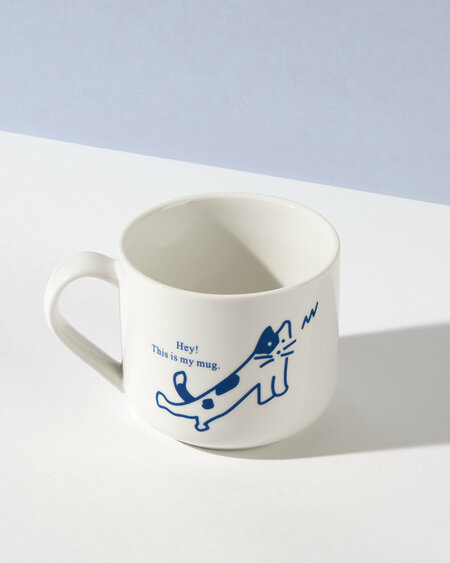 Оригинальная керамическая кружка с забавным принтом и надписью “Hey! This is my mug.” — отличный выбор для дома, офиса или подарка. Надпись и рисунок не только поднимают настроение, но и как бы намекают: чужие руки — прочь! Характеристики: • Объём: 350 мл • Материал: высококачественная керамика • Цвет: белый с синим рисунком • Удобная форма и комфортная ручка • Подходит для горячих и холодных напитков • Можно использовать в микроволновке и мыть в посудомоечной машине Преимущества: • Яркий и запоминающийся дизайн • Приятная на ощупь гладкая поверхность • Идеально для подарка любителям домашних животных и стильной посуды