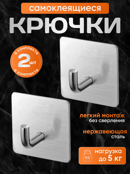 Крючки самоклеящиеся из нержавеющей стали для ванной и кухни - 2 шт.