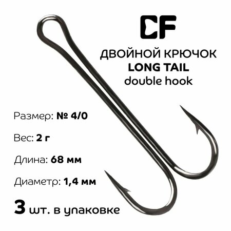 Крючки двойные Crazy Fish Long Tail Double Hook №4/0 длина 68 мм3 шт