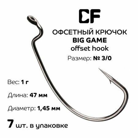 Крючки офсетные Crazy Fish Big Game Offset Hook №3/0 длина 47 мм 7 шт