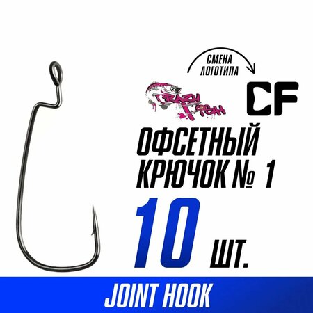 Крючки офсетные Crazy Fish Offset Joint Hook №1 длина 44 мм 10 шт.