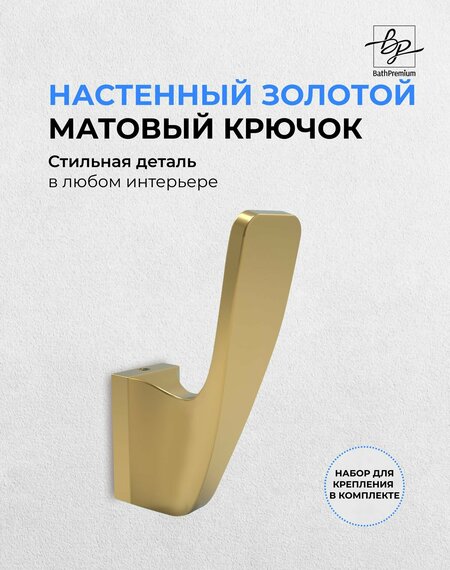 Золотой настенный крючок для ванной или прихожей от бренда BathPremium премиум класса. Однорожковый крючок для одежды и полотенец выполнен из прочного алюминия с защитным глянцевым покрытием. Представлен в благородном золотистом цвете. Элегантное влагостойкое покрытие высокого качества защищает изделие от коррозии и продлевает эксплуатационный срок. Набор для скрытого надежного крепления на саморезах к стене или двери в комплекте. Можно повесить тяжелое пальто или несколько полотенец. Такая конструкция прочно удерживает петельку кухонного или банного полотенца, мочалки или других предметов. Маленький подвесной полотенцедержатель изготовлен из прочного металлического сплава, покрытого инновационным напылением, которое защищает металл от внешнего воздействия. Поэтому он долговечен, устойчив к влажности, плесени и механическим повреждениям. Применение: • Настенный крючок отлично переносит влагу, поэтому можно использовать в ванной комнате для полотенец, халатов, мочалок и прочего. • Крючок оригинально смотрится и на кухне для прихваток и кухонных полотенец. • Также можно использовать в прихожей, коридоре или гардеробной для верхней одежды, вещей или сумок. Можно использовать для ключей, как ключницу. Компактный миниатюрный держатель для полотенец - идеальный вариант для небольшой ванной комнаты, бани или помещений, где нужны аксессуары для банных принадлежностей. Универсальная навесная мини вешалка подойдет в любой интерьер кухни, прихожей или гардероба. Строгий стиль матового крючка с алюминиевым покрытием идеально впишется в классический и современный дизайн. Станет небольшим, но очень важным штрихом интерьера санузла в стиле Минимализм, Лофт, Хай-тек или Скандинавском. Любую ванную комнату можно превратить в стильный и уютный уголок с помощью таких деталей как оригинальные крючки, вешалки и держатели с четкой геометрией, выполненных в классическом цвете золото.