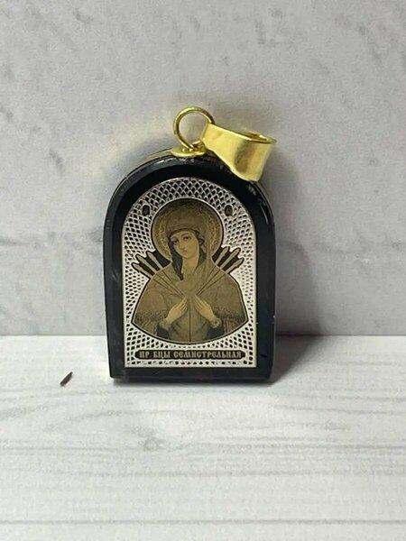 Кулон икона с изображением Богородицы с пронзенным семью мечами сердцем на лечебном камне обсидиан. Размер 25*18*5мм. Кулон придет в подарочной упаковке и со шнурком для кулона. Выбирая подвеску Семистрельная икона, молясь этому образу, верующий находится под защитой Матери Божией, которая уберегает его от злости и ненависти, болезней и бед, смягчает его сердце и сердца окружающих. Икона Божией Матери Семистрельная: дарует выздоровление, успокаивает душу, исцеляет тело, оберегает от травмзащищает от конфликтов с людьми: сослуживцы, соседи и т. псмиряет человеческий гнев, раздражительностьпомогает в смягчении сердец людей, враждебно настроенных оберегает воинов и защитников, помогает помириться супругам, родственникам, близким людям. Обсидиановый нательный кулон или брелок станет значимым подарком для вас или того человека, который вам дорог на новый год или рождество, день рождения, крещение или любой другой праздник.