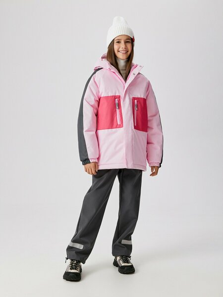 Детская утеплённая куртка на флисе для девочки выполнена из мембранной ткани с водоотталкивающей пропиткой, что защищает от влаги и ветра снаружи и от испарений тела изнутри. Подкладка на теле изготовлена из флиса, подкладка рукавов из стандартной подкладочной ткани. Вид утеплителя – синтепон (вес 350г/м2). Рекомендованный температурный режим от +5 до -15 градусов. Застёжка на молнию с внутренней и внешней планками обеспечивает легкое одевание. Внешняя планка застегивается на кнопки и липучки. Защита от защемления подработка добавляет удобство в ношении. Спереди расположены два нагрудных кармана на молнии для удобства хранения печаток. Несъемный капюшон дополнительно защищает от ветра. Низ рукавов заканчивается манжетами на резинке, что обеспечивает лучшее прилегание к телу и сохранение тепла. Светоотражающие элементы обезопасят ребенка от машин в темное время суток. Куртка дополнена внутренней утяжкой по талии, что защищает от холодного воздуха. Внутренние бретели позволяют снять куртку в помещении, не занимая руки; бретели декорированы текстовым принтом "OUTDOOR FRIENDLY" [англ. - "Подходит для отдыха на открытом воздуха"]. Добавьте куртку в розовом цвете в гардероб ребенка теплых образов на прогулки. 20200650001 20200650001