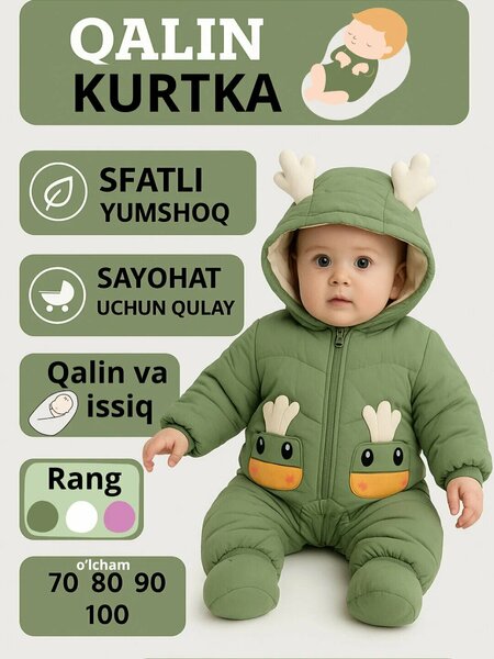 {"widgets":{"@light/ProductM2bEdoOnlyBadge":{"/content/page/fancyPage/defaultPage/m2bEdoOnlyBadge":{"wrapperProps":{"margins":{"top":"2"}},"isM2bEdoOnlyEnable":false}}},"meta":{"/content/page/fancyPage/defaultPage/m2bEdoOnlyBadge":{"name":"@light/ProductM2bEdoOnlyBadge"}},"collections":{"views":{"defaultOffer":"vi_3407542775549676925_bi_4000459316442186624"},"viewItem":{"vi_3407542775549676925_bi_4000459316442186624":{"id":"vi_3407542775549676925_bi_4000459316442186624","composeId":"3407542775549676925","buyOptionId":"bi_4000459316442186624"}},"buyOption":{"bi_4000459316442186624":{"id":"bi_4000459316442186624","title":"Куртка для младенцев, зимняя одежда для детей, комбинезон, детская одежда","offerId":"AKqL0SyE6jjvXGxRm0EqqA","slug":"kurtka-dlya-mladentsev-zimnyaya-odezhda-dlya-detey-kombinezon-detskaya-odezhda","trackingLinks":{"cpa":"/12uB4b5GdSyks4Uyy8u3g0IaVtJw","promotionUrl":"/0NHKxbWaLZZ_noaSc6yxSkjXSUK7"},"skuId":"5028059106","productId":"5028059105","categoryId":"989022","navnodeId":"16413619","departmentId":"54421","showUid":"17717169948101990664306001","counterStep":1,"minimum":1,"maximum":5,"price":{"value":119999,"currency":"UZS"},"vendorId":"15728405","feeShow":"OTNDnItfwRMlLJby2gHopZnxXq6IiYEt1AxK2gwR8qXzFYWTld1iBLKrGLCbMU9TYnxGjRwOmtT71v-iTUYl_40b4q1D61RpXkSmZ5j9kvDXRxLQYCg29IhvnMDfGAROdg1Xsea5z9IV0qIPo5-mEFR8uTnXwo0FUwahc11lh7QhLffWxxPFfhd8v6IV6rGFRTiU5I04XSASDP-CiiU3VCDHQSM_dzYaOAPVatnqRgbgPfRjlBcJ-gIQbuBHZVKCSZ7i525G6FHksu2rPZzPtJinaZlMgViudcfa22YA3p2YuULQs6k_Uw,,","feedId":"58633894","feedOfferId":"58633894.yashilkurtka90","shopId":"431782","supplierId":"216617375","businessId":"216617376","supplierName":"Yulduzcha","businessName":"Yulduzcha","hasAnySize":false,"hasAnyDelivery":true,"benefitTypeCode":"waremd5","basePrice":{"value":310000,"currency":"UZS"},"flags":["isVisual","isFbs","isOnDemand","isPartialCheckoutAvailable"],"analytics":{"warehouseId":"2089360","paymentType":"ANY","atSupplierWarehouse":true,"paymentMethodTypes":["BY_CARD_ONLINE","BY_CARD_TO_COURIER","IN_CASH"],"deliveryOptions":[{"deliveryType":"delivery","fromDate":1771976194,"toDate":1771976194,"priceInfo":{"value":0,"currency":"UZS"}},{"deliveryType":"pickup","fromDate":1771976194,"toDate":1771976194,"priceInfo":{"value":0,"currency":"UZS"}},{"deliveryType":"pickup","fromDate":1771976194,"toDate":1771976194,"priceInfo":{"value":0,"currency":"UZS"}},{"deliveryType":"delivery","fromDate":1771976194,"toDate":1771976194,"priceInfo":{"value":0,"currency":"UZS"}}],"shopSku":"yashilkurtka90","placementType":"3P","ownMarketPlace":true,"shopSlug":"yandex-market","yandexBnplInfo":{"enabled":true},"hypeBadge":{"hasBadgeRare":false}},"deliveryType":"DELIVERY","imageMeta":{"namespace":"mpic","groupId":18082423,"key":"2a0000019bcd3ac8189bbdb0c5cd72a034f5"}}},"market2Business":{"current":{"id":"current","isM2b":false}}}}