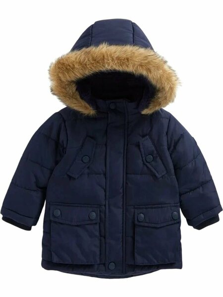 Стеганая куртка для мальчика в элегантном темно-синем цвете сочетает стиль и функциональность. Утеплённая подкладка из искусственного меха обеспечивает тепло и комфорт в холодные дни, а удобный капюшон защищает от ветра и осадков. Практичные карманы позволяют носить важные мелочи, а прочные застёжки облегчают одевание. Эта куртка станет идеальным выбором для активных прогулок, сохраняя тепло и обеспечивая свободу движений даже в зимнюю пору. Современный дизайн делает её универсальной для любого случая.