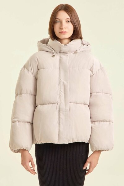 Тёплая куртка с мягким объёмным силуэтом создаёт спокойный и уютный образ, подчёркивая аккуратность линий и обеспечивая комфорт в холодное время года. Укороченная длина делает модель удобной для активного ритма дня, а высокий воротник и капюшон надёжно защищают от ветра. Свободный крой позволяет легко сочетать куртку с трикотажными платьями, джоггерами или повседневными брюками. Эластичные манжеты помогают сохранять тепло, а гладкая поверхность ткани придаёт изделию современный и аккуратный вид. Такая модель гармонично вписывается в базовый зимний гардероб.