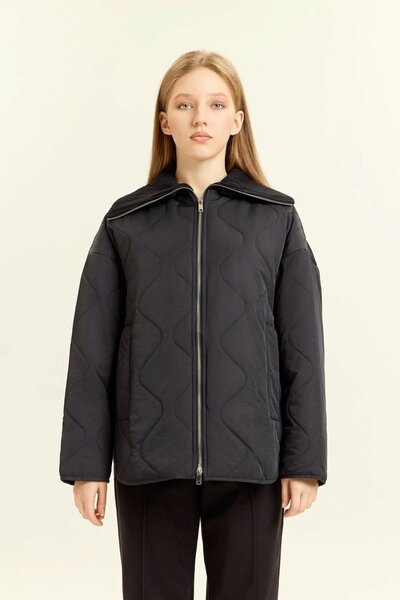Куртка с оригинальной стеганой фактурой в виде плавных волн выделяется современным дизайном и универсальностью. Легкий утеплитель обеспечивает тепло и комфорт в холодное время года, сохраняя при этом свободу движений. Застежка на молнию по всей длине удобна и практична, позволяя быстро адаптироваться к меняющимся условиям погоды. Широкий воротник с мягкой вязаной вставкой добавляет изделию стильный акцент и защищает от ветра. Прямой крой делает модель подходящей для разных типов фигуры и легко комбинируемой с повседневными и более строгими элементами гардероба. Куртка отличается лаконичностью и современным характером, что делает её идеальной основой для повседневных образов. Она органично сочетается с брюками, джинсами и юбками, сохраняя баланс практичности и модного стиля.