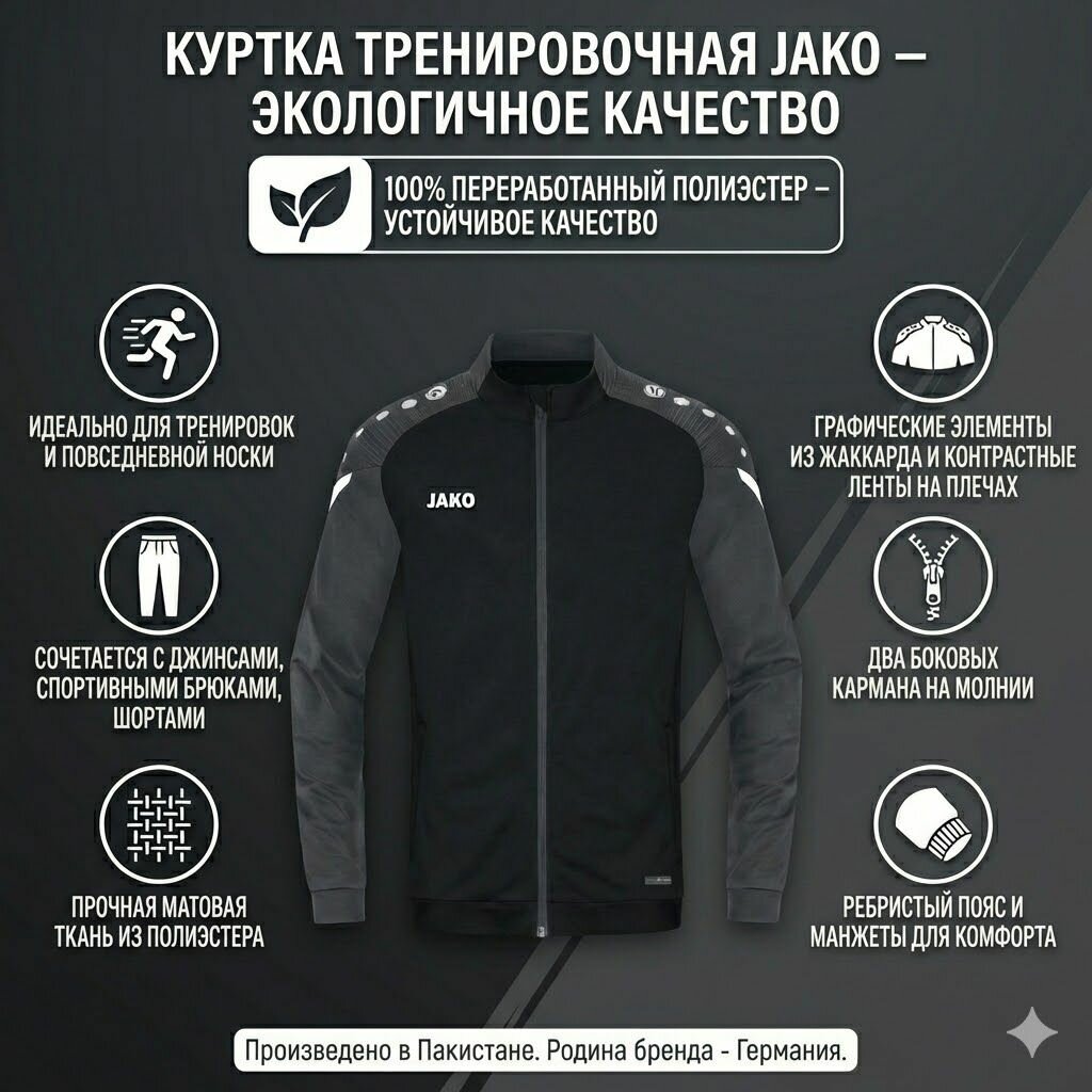 Тренировочная куртка от компании JAKO произведена из 100% переработанного полиэстера. Идеально подходит как для тренировок, так и для повседневной носке. Хорошо сочетается с джинсами, спортивными брюками и шортами. Куртка изготовлена из матового полиэстера, который отличается прочностью и простотой в уходе. Вставка на плечах с графическими элементами из жаккарда и контрастные ленты на плечах делают куртку заметной и привлекательной. Спереди куртки два кармана на молнии. Ребристый пояс и манжеты на рукавах с ребристой отделкой повышают комфорт при ношении. Состав: 100% переработанный полиэстер. Произведено в Пакистане. Родина бренда - Германия.