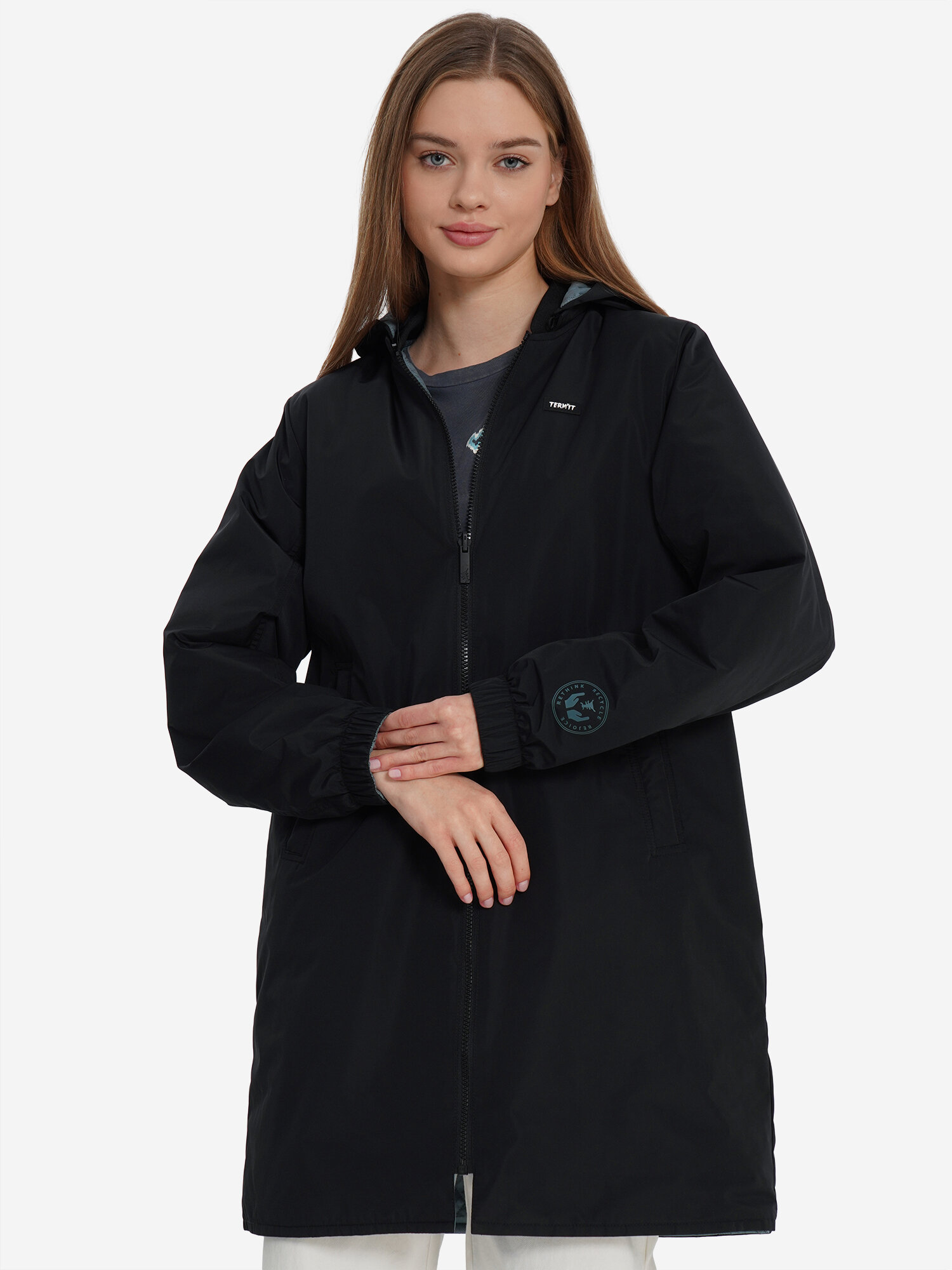 Куртка Termit для женщин — идеальный выбор для тех, кто любит менять образы. Эта двусторонняя женская модель легко адаптируется под ваше настроение и занятие, будь то прогулка по городу, путешествие или скейтбординг. Современный синтетический наполнитель плотностью 80 г/м2 эффективно сохраняет тепло, быстро сохнет и не теряет свои свойства после стирки. При комфортной ходьбе 4 км/ч модель подходит для температуры до 0 °С. При энергичной ходьбе 6 км/ч или активных занятиях спортом — от +5 до -5 °С. Температурный режим определен согласно стандартам ISO 11 079 и BS EN 342:2017 и учитывает небольшой ветер 4 м/с. Важно: восприятие температуры зависит от погодных условий, количества слоев одежды и индивидуальных особенностей организма. Мембрана и водоотталкивающая пропитка Water-resistant защищают от дождя и создают комфортный микроклимат внутри. Показатели водонепроницаемости и паропроницаемости: 1000 мм / 1000 г/м2/24 ч. Двусторонний дизайн дает возможность менять свой стиль каждый день. В модели предусмотрено 4 вместительных кармана для всех нужных вещей, включая 2 внутренних. Капюшон на скрытой молнии можно отстегнуть, чтобы создать новый образ. Он также защитит от ветра, при этом не испортит вашу прическу. Материал ткани отличается высокой износостойкостью, так что куртка прослужит вам не один сезон. Подкладка выполнена из переработанного полиэстера, что позволяет не только выглядеть стильно, но и заботиться о будущем планеты. Щадящая стирка 30 °C. Не отбеливать. Сушка в машине запрещена. Глажение запрещено. Химчистка запрещена. Не замачивать. Стирать специальным средством. Тщательно полоскать после стирки. Товар подходит для женщин. Состав: Верх: 100% Полиэстер, Подкладка: 100% Переработанный полиэстер, Утеплитель: 100% Полиэстер. Параметры модели (жен): Рост 175 см. Обхват груди 83 см. Обхват талии 60 см. Обхват бедер 90 см.