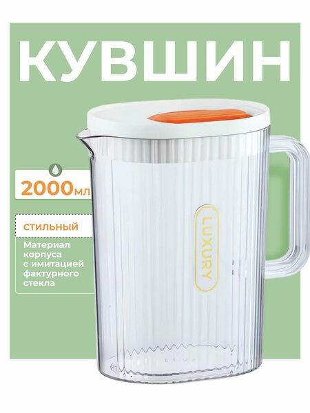 Кувшин для воды пластиковый, 2л Этот кувшин изготовлен из высококачественного пластика, который отличается прочностью и отсутствием запаха. Его объем составляет 2000 мл, что делает его идеальным для использования в различных целях. Пластиковый кувшин для воды оснащен крышкой, которая предотвращает выливание воды. Кувшин пластиковый с крышкой - надежный помощник в доме!